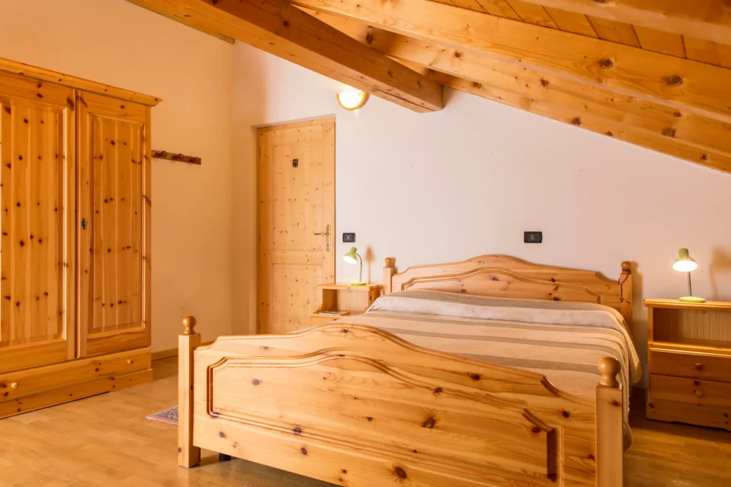La baita ospita due accoglienti appartamenti vacanze, progettati per accogliere coppie, famiglie e i loro animali domestici di piccola taglia. L’alloggio 1 si trova al primo piano e dispone di un soggiorno con angolo cottura, una camera matrimoniale, una camera singola e un bagno completo di vasca/doccia e lavatrice. L’alloggio 2, al secondo piano mansardato, offre le stesse comodità con l’aggiunta di un suggestivo balcone coperto, ideale per rilassarsi all’aperto.